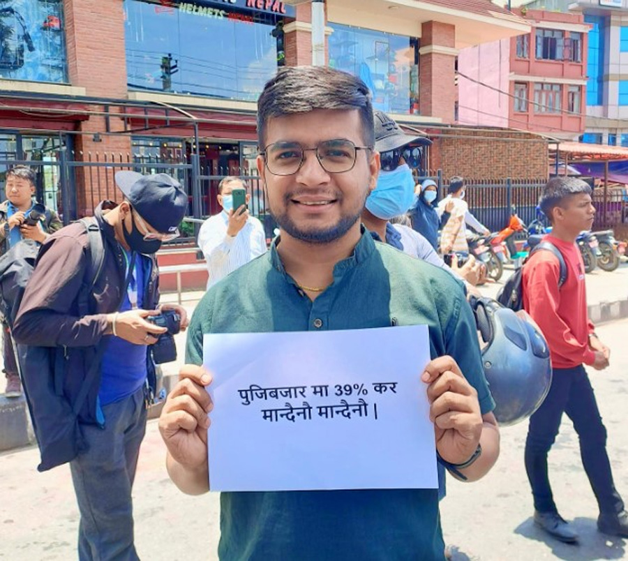बिहिबारदेखि आन्दोलनमा उत्रिएका लगानीकर्ताहरुले ‘आर्थिक विधेयक सम्सोधन गर, ५ प्रतिशत र ७.५ प्रतिशत पुँजीगत लाभकर अन्तिम गर, पस्चगामी कर नीति खारेज गर, सबैभन्दा पारदर्शी कारोबार पुँजीबजार मै छ, लगानीकर्ता माथि जालझेल बन्द गर, पुँजीबजारमा ३९ प्रतिशत कर मान्दैनौ जस्ता पम्प्लेटहरु बोकेर विरोध गरेका हुन् ।