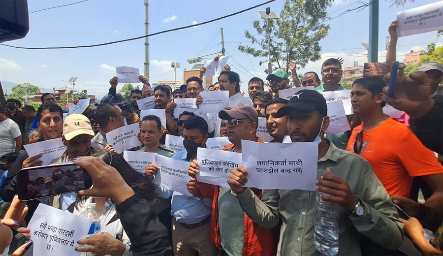 काठमाडौं । शेयर लगानीकर्ताहरु आगामी आर्थिक वर्ष २०८०।८१ को बजेट तथा आर्थिक विधेयक संशोधन गर्नुपर्ने माग राख्दै आन्दोलनमा उत्रिएका छन् । अर्थमन्त्री डा. प्रकाशशरण महतले जेठ १४ गते घोषणा गरेको बजेटमा आफुहरुले माग राख्दै आएको पुँजीगत लाभकर घटाउनुपर्ने विषय सम्बोधन नभएपछि लगानीकर्ताहरु आन्दोलनमा उत्रिएका हुन् ।