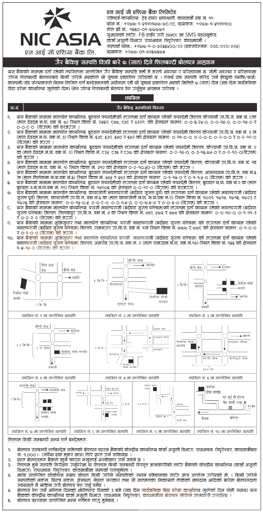 एनआइसी एशिया बैंकले १० वटा जग्गा लिलाम गर्दै