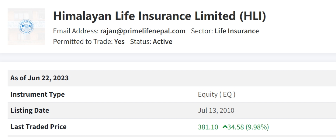 कारोबारको पहिलो दिनमै हिमालयन लाइफको शेयरमा सकरात्मक सर्किट