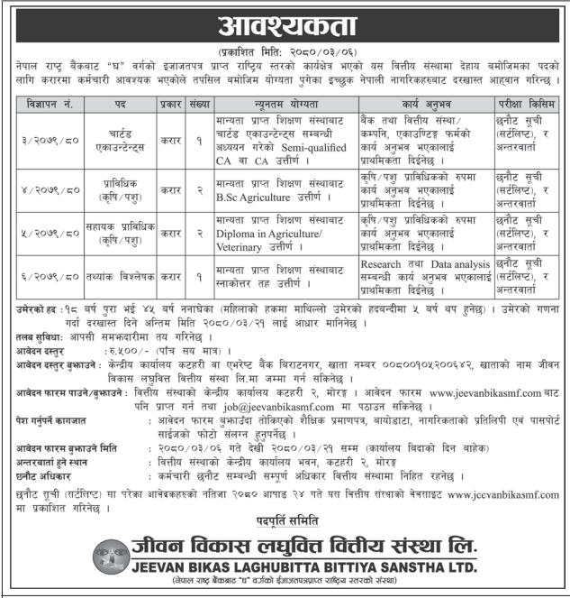 जीवन विकास लघुवित्तले खुलायो रोजगारको अवसर, यसरी दिनुस् आवेदन