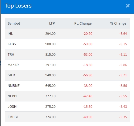 त्यस्तै, आज खप्तड लघुवित्त, तारागाउँ रिजेन्सी होटल, मकर जितुमाया सूरी हाइड्रोपावर लगायत अन्य कम्पनीको शेयरमूल्य घटेको छ ।