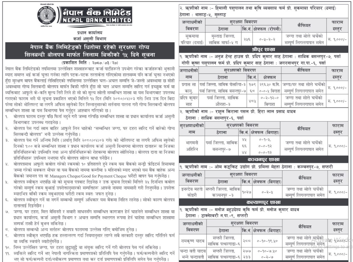 नेपाल बैंकले यी सम्पत्ति लिलामी मार्फत बिक्री गर्दै