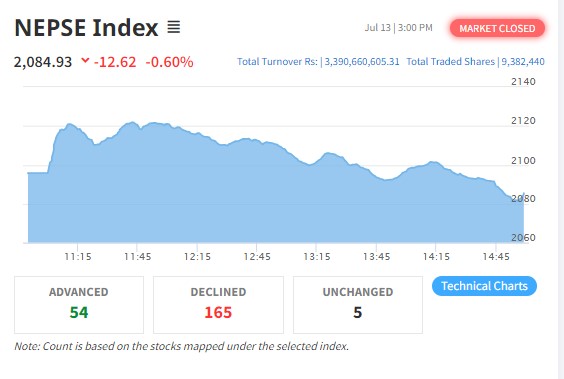 नेप्से घट्यो, फाइनान्स र हाईड्रो सेक्टरमा गिरावट