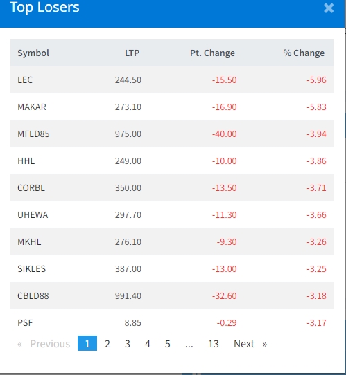त्यस्तै, मक्कर जितुमाया हाइड्रोपावर, मन्जुश्री फाइनान्सको डिभेन्चर, हिमालयन हाइड्रोपावर लगायत अन्य केही कम्पनीहरुको शेयरमूल्य घटेको छ ।
