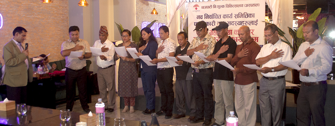 काठमाडौं । देशकै सबैभन्दा पुरानो सामूदायिक अस्पतालको रुपमा उत्कृष्ट सेवा प्रवाह गर्दै आएको छत्रपाटी निःशुल्क चिकित्सालयका नव निर्वाचित अध्यक्ष तथा सञ्चालक समितिका पदाधिकारीहरुले पद तथा गोपनियताको शपथ लिएका छन् । सोमबार काठमाडौंको ठमेलमा आयोजित कार्यक्रमका बीच निर्वाचन समितिका संयोजक बरिष्ठ अधिवक्ता विश्वराज भट्टराईले अध्यक्ष डा. मनोजमान श्रेष्ठसहितका पदाधिकारी र कार्य समितिका सदस्यहरुलाई पद तथा गोपनयिताको शपथ ग्रहण गराएका हुन् ।