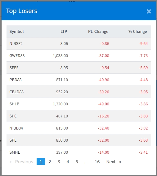 आज शेयर बजार बढेता पनि केही कम्पनीको शेयरमूल्य चाँही घटेको छ । बुधबार एनआईबिएल समृद्धि फण्ड २ को शेयरमूल्य सर्वाधिक घटेको छ । त्यस्तै, आज गुडविल फाइनान्स, सनराइज इक्युटी फण्ड प्राइम डिभेन्चर २०८८ लगायत अन्य कम्पनीहरुको शेयरमूल्य घटेको छ ।