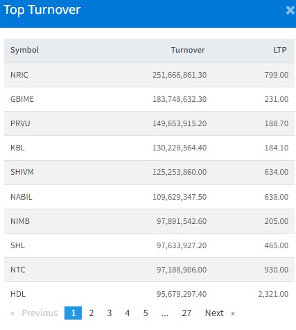 त्यस्तै, ग्लोबल आइएमई बैंक, प्रभु बैंक, कुमारी बैंक, शिवम् सिमेन्ट्स, नबिल बैंक, नेपाल इन्चेष्टमेन्ट मेगा बैंक, सोल्टि होटल, नेपाल टेलिकम र हिमालयन डिष्टिलरीको शेयर आज सर्वाधिक बढेको छ ।