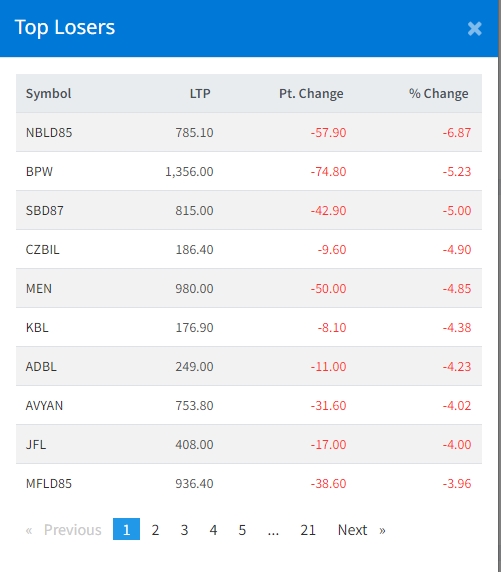 शेयर बजार घटेसँगै नबिल डिभेञ्चर २०८५ को शेयरमूल्य सर्वाधिक घटेको छ । त्यस्तै, आज बिपिडब्लु लघुवित्त, सानिमा डिभेन्चर, सिटिजन्स बैंक लगायत अन्य कम्पनीको शेयरमूल्य घटेको छ ।