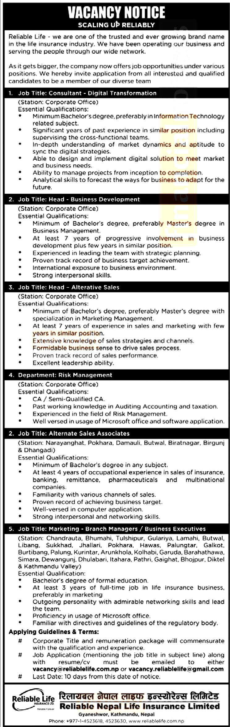 रिलायबल नेपाल लाइफले खुलायो ठूलो संख्यामा रोजगारको अवसर, कति चाहिन्छ शैक्षिक योग्यता ?