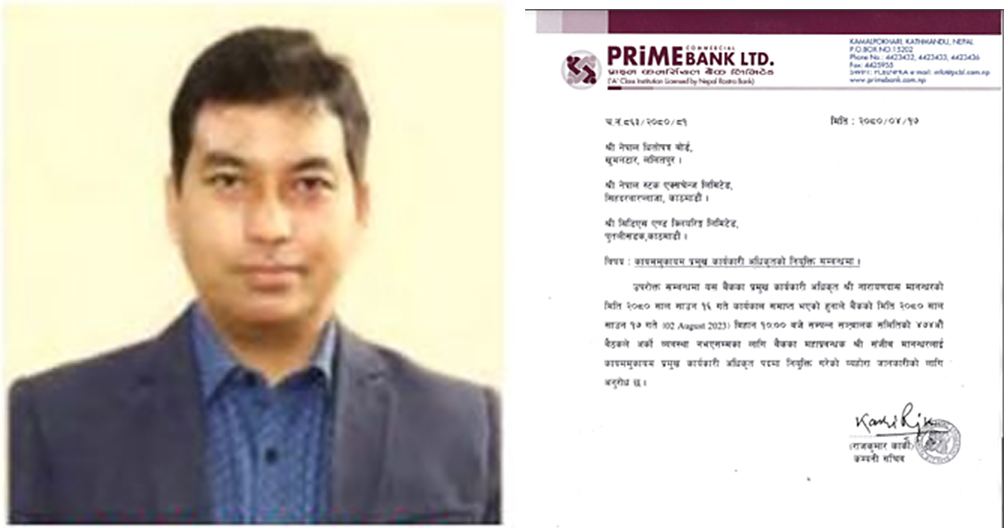काठमाडौं । प्राइम कमर्सियल बैंकले कायममुकायम प्रमुख कार्यकारी अधिकृतमा संजीब मानन्धरलाई नियुक्त गरेको छ ।