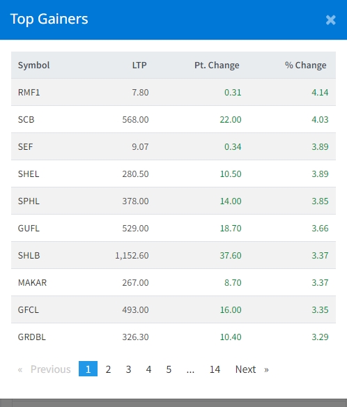 शेयर बजारमा समान्य अंकले हरियाली छाएसँगै आरबीबी म्युचुअल फण्ड १ को शेयरमूल्य सर्वाधिक बढेको छ । त्यस्तै, सिंगटी हाइड्रो, सिद्धार्थ इक्युटी फण्ड, सिर्जजशील लघुवित्त लगायतका कम्पनीहरुको शेयरमूल्य बढेको छ ।