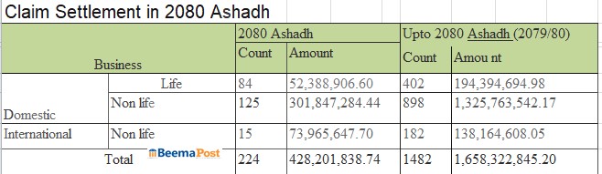 नेपाल पुनर्बीमा कम्पनीद्धारा १ अर्ब ६५ करोड दाबी भुक्तानी, साढे १३ करोड मात्रै नेपालबाट बाहिरियो