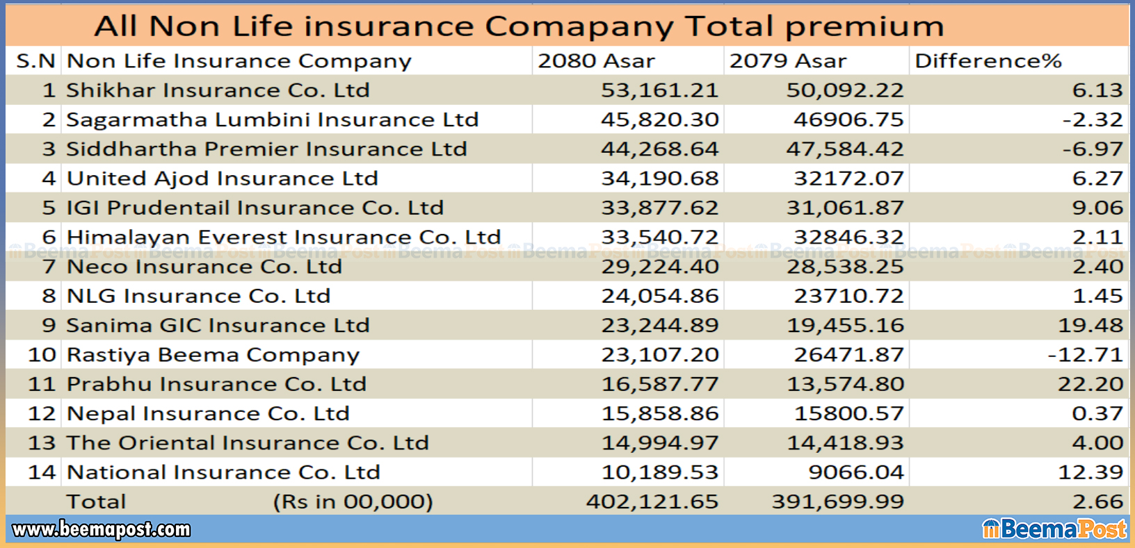 निर्जीवन बीमा व्यवसायमा प्रभु इन्स्योरेन्सको छलाङ, राष्ट्रिय बीमा कम्पनी सबैभन्दा पुछारमा, कसको अवस्था कस्तो ?