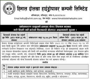 हिमाल दोलखा हाइड्रोपावरको लिलामी शेयरमा आवेदन दिने आज अन्तिम दिन