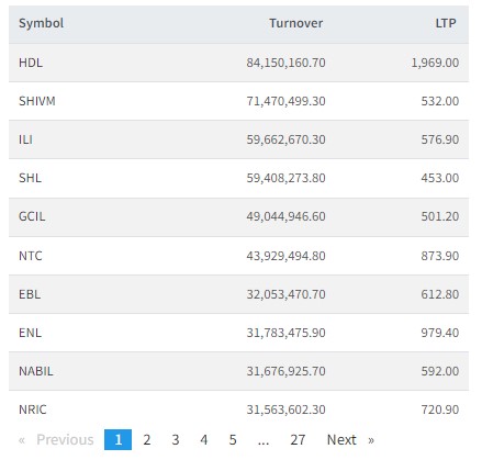 त्यस्तै, शिवम् सिमेन्ट, आइएमई लाइफ, सोल्टि होटल, घोराही सिमेन्टस, नेपाल टेलिकम, एभरेष्ट बैंक, इमजीङ पावर, नबिल बैंक र नेपाल रि को आज सर्वाधिक कारोबार भएको छ।
