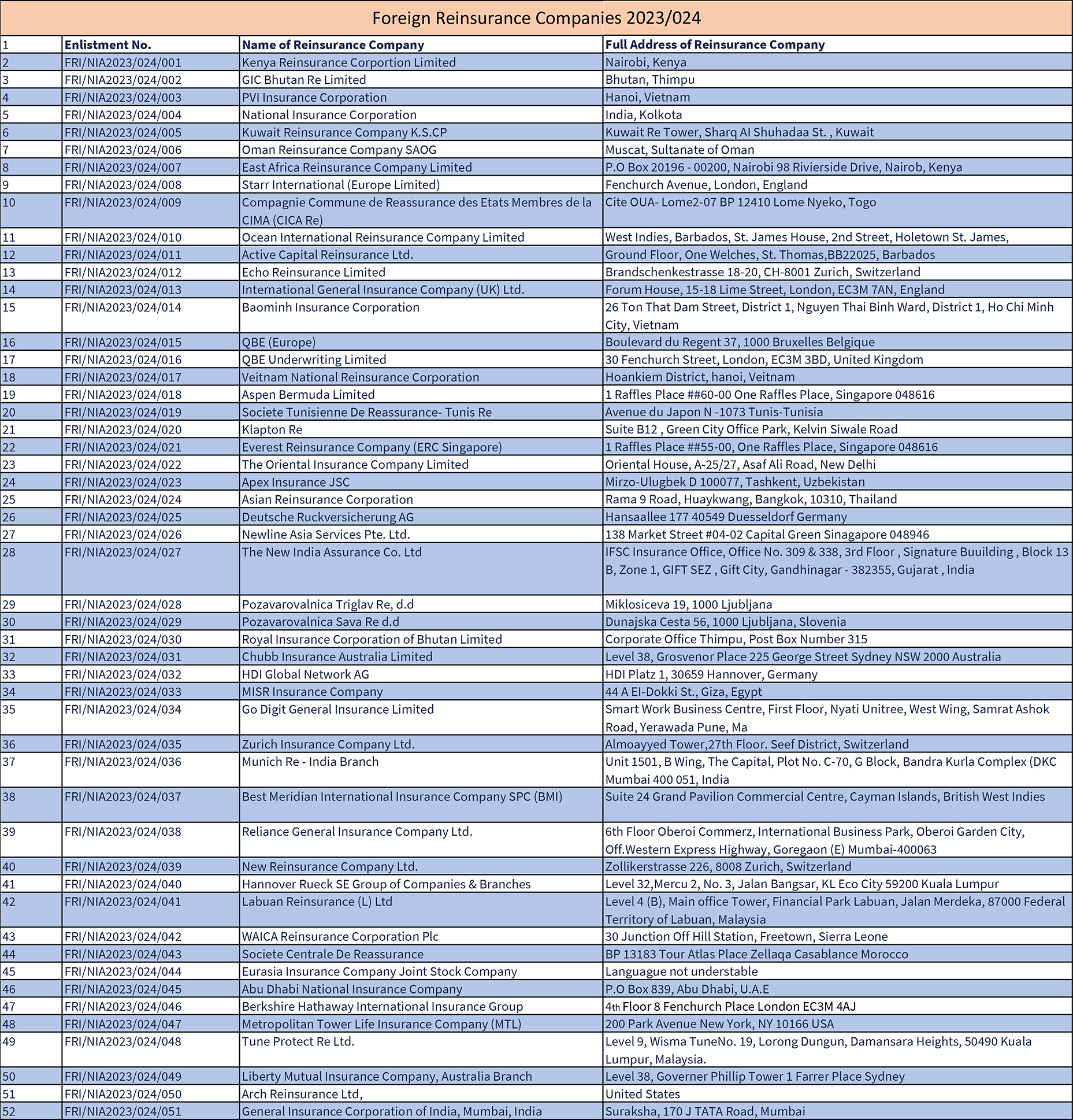 नेपालमा सञ्चालित बीमा कम्पनीहरुले उक्त सूचिकृत पुनर्बीमा कम्पनीमा मात्रै पुनर्बीमा गर्न पाउने छन् ।