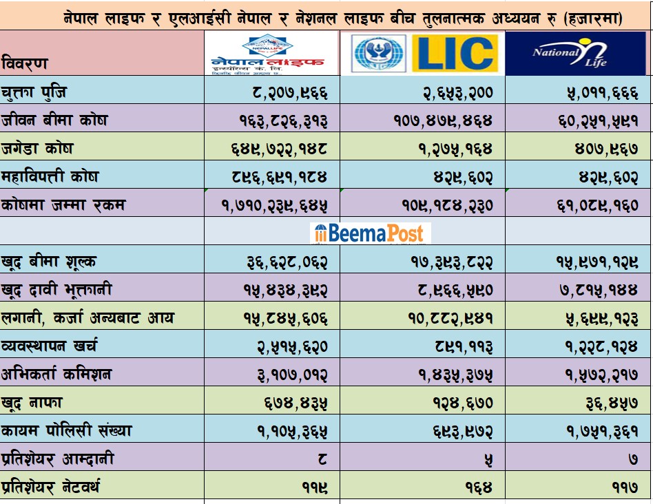 जीवन बीमा व्यवसायको आधा हिस्सा ओगटेको नेपाल लाइफ,नेशनल र एलआईसी नेपाललाई दाँजेर हेर्दा, कसको वित्तिय अवस्था कस्तो ?
