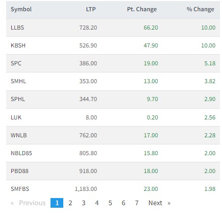 त्यस्तै,समलिङ पावर, सुपर मादी, सयपत्री हाईड्रोपावर, लक्ष्मी उन्नती कोष, विन नेपाल लघुवित्त, नबिल बैंकको डिभेञ्चर २०८५, , प्राईम बैंकको डिभेञ्चर ८८, र स्वाभिमान लघुवित्तको शेयर मूल्य बढेको छ ।