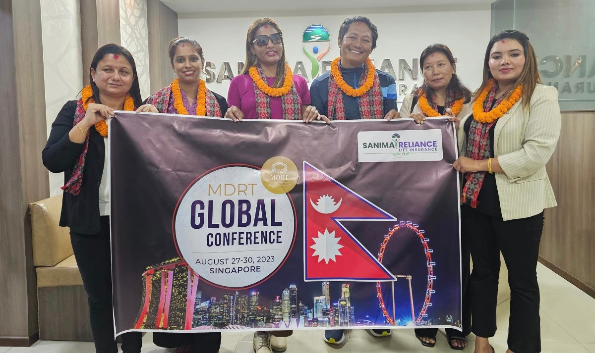 सानिमा रिलायन्स लाइफबाट छ जनाको टोली एमडिआरटी सम्मेलनमा भाग लिँदै, सिईओ पाण्डेद्वारा राष्ट्रिय झण्डासहित विदाई