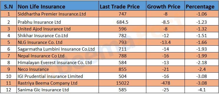 यो साता बीमा कम्पनीहरुको शेयरमूल्यमा उच्च गिरावट, कुनको कति ? (एलटीपीसहित)