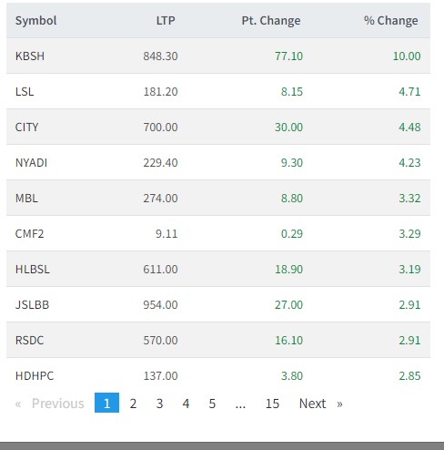 त्यस्तै, लक्ष्मी सनराईज बैंक, सिटि होटल, न्यादी हाईड्रोपावर, माछापुच्छे्र बैंक, सिटिजन म्युचल फण्ड २, हिमालयन लघुवित्त, जनउत्थान लघुवित्त, आरएसडिसी लघुवित्त, हिमाल दोलखाको शेयर मूल्य बढेको छ ।