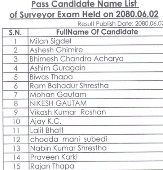 नेपाल बीमा प्राधिकरणले सर्भेयरहरुको नाम सार्वजनिक गरेको छ। प्राधिकरणले आज एक सूचना जारी गर्दै १५ जना सर्भेयरको नाम सार्वजनिक गरेको हो ।बीमा सर्भेयरको अनलाइन परीक्षामा १३ जनाले सहभागी अयोग्य ठहरिएका छन्।
