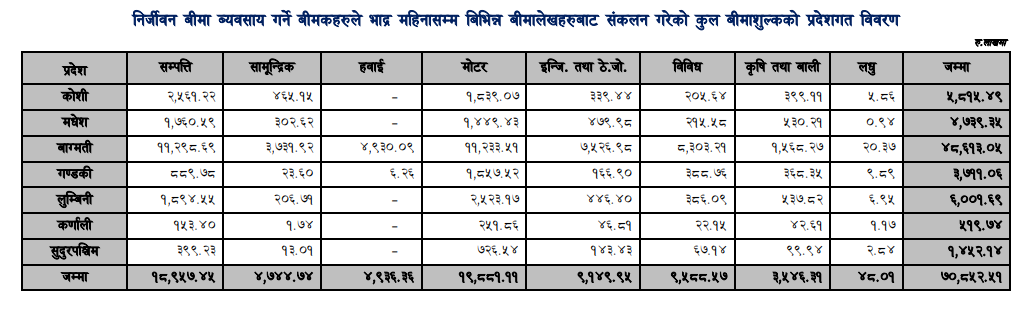 निर्जीवन बीमा कम्पनीको आधा व्यवसाय बागमति प्रदेशमा, अन्य कुनमा कति ? (तथ्यांकसहित)