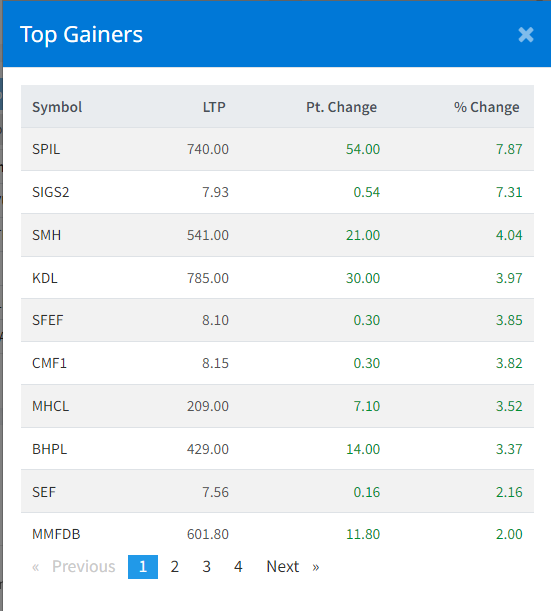 यसका साथै, सिद्धार्थ इन्भेष्टमेन्ट ग्रोथ स्किमको ७ प्रतिशत, कालिन्चोक दर्शनको ३.९७ प्रतिशतले शेयरमूल्य बढेको छ ।