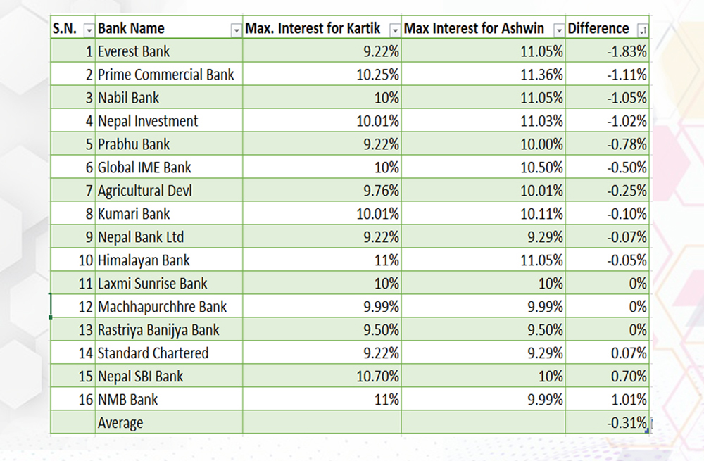 बैंकहरुले निक्षेपको व्याज घटाए, कार्तिक १ देखि लागू