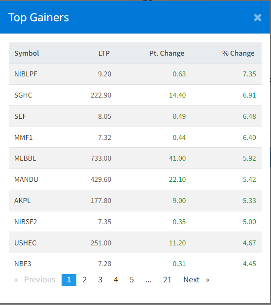यसका साथै, मंगलबार स्वीत गंगा हाइड्रोपावरको ६.९१, सिद्धार्थ इक्युटी फण्डको ६.४८, मेगा म्युच्युअल फण्डको ६.४० प्रतिशतले शेयरमूल्य बढेको छ ।