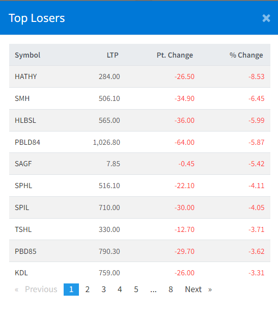 यसका साथै, मंगलबार हाथवे इन्भेष्टमेन्ट नेपालको सबैभन्दा बढी प्रतिशतले घटेको छ । त्यस्तै, सुपरमाई हाइड्रोपावरको ६.४५ प्रतिशतले शेयरमूल्य घटेको छ ।