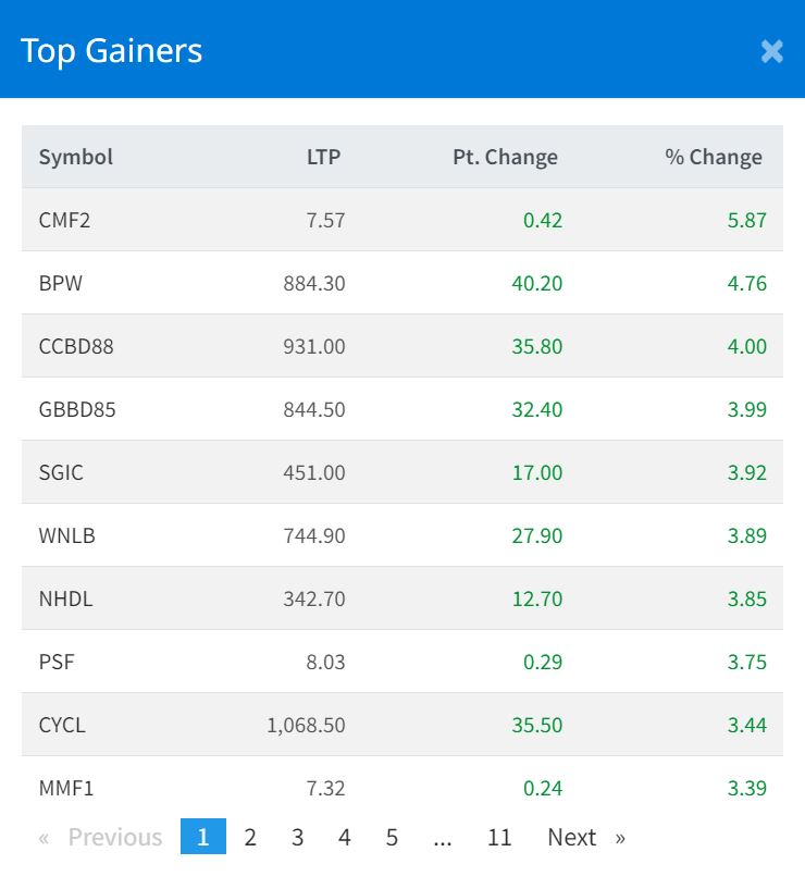 सिटिजन्स म्युच्युअल फण्ड २ को शेयर मूल्य ५.८७ प्रतिशतले बढेको छ । दोस्रो नम्बरमा बीपीडब्लू लघुवित्त वित्तीय संस्था छ । जसको शेयरमूल्य ४.७६ प्रतिशतले बढेको छ । सेन्चुरी डिवेन्चर २०८८ को शेयर मूल्य समेत बढेको छ ।