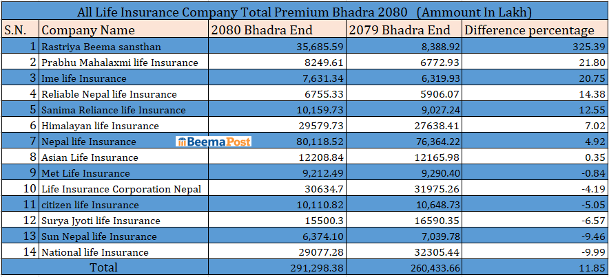 जीवन बीमा कम्पनीहरुले भदौ मसान्तसम्ममा आर्जन गरे २९ अर्ब बढी बीमाशुल्क, कुनले कति ? (तथ्यांकसहित)