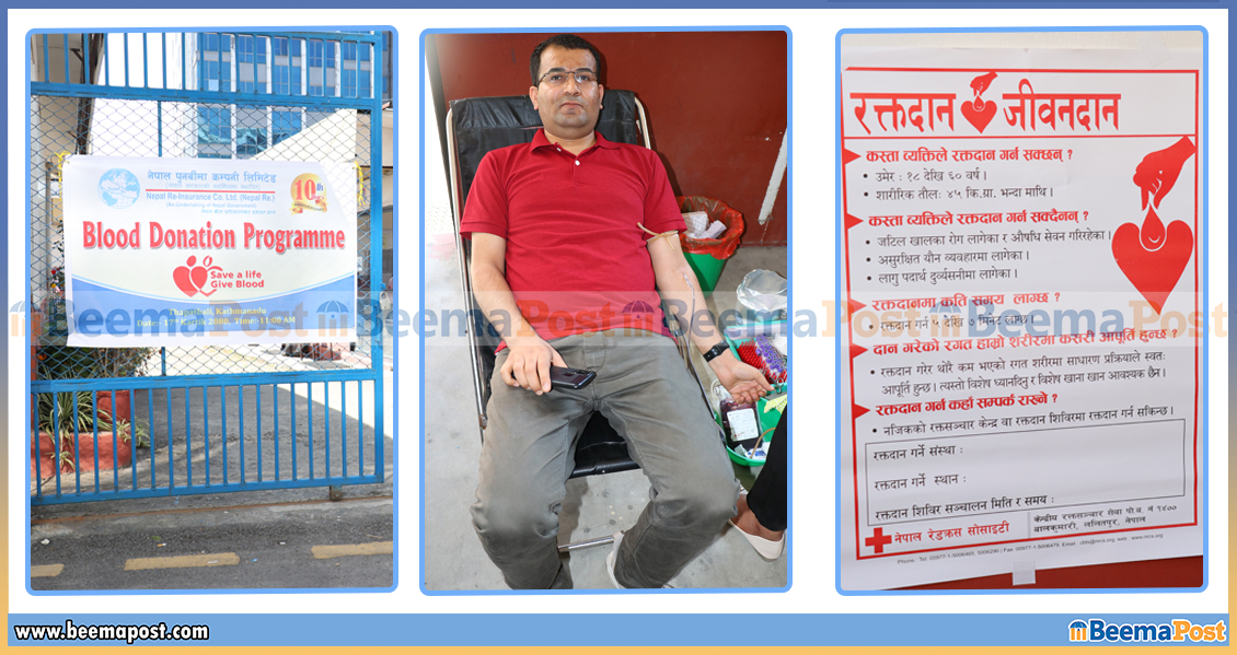नेपाल पुनर्बीमा कम्पनीले रक्तदान कार्यक्रम गर्दै (तस्बिरहरु)