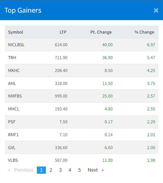 आइतबार एनआइसी एशिया लघुवित्तको शेयरमूल्य ६.९७ प्रतिशतले सर्वाधिक रहेको छ । साथै, तारागाँउ रिजेन्सीको ५.४७ प्रतिशत, मायाखोला हाइड्रोपावरको ४ प्रतिशतले शेयर बढेको छ ।