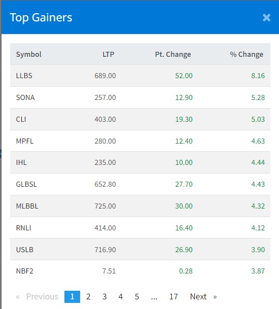 शेयर बजार बढेसँगै लक्ष्मी लघुवित्तको शेयरमूल्य सर्वाधिक बढेको छ । आज कम्पनीको शेयरमूल्य ८.१६ प्रतिशतले बढेको छ । त्यस्तै, सोनापुर मिनिरल्सको ५ प्रतिशत, सिटिजन लाइफको ५ प्रतिशतले शेयरमूल्य बढेको छ ।