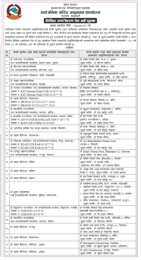 त्यसरी कालोसूचीमा सिफारिस भएकामध्ये अधिकांश सडक ठेकेदारहरु छन् । त्यसरी कालोसूचीमा सिफारिस हुनेहरु अधिकांश स्थानीय तहको योजनामा हातहालेकाहरु र डिभिजन सडकको काम जिम्मा लिएकाहरु बढी छन् । कालोसूचीमा सिफारिस हुने दूरसञ्चारसँग सम्बन्धित ठेकेदार कम्पनी समेत छ । सडक ठेकेदारहरुले बैंकहरुलाई समेत टाट पल्टाउने गरी ओभर ड्राफ्टको पैसा झिकेर अन्यत्र लगानी गर्ने गरेको खुल्न आएको छ ।