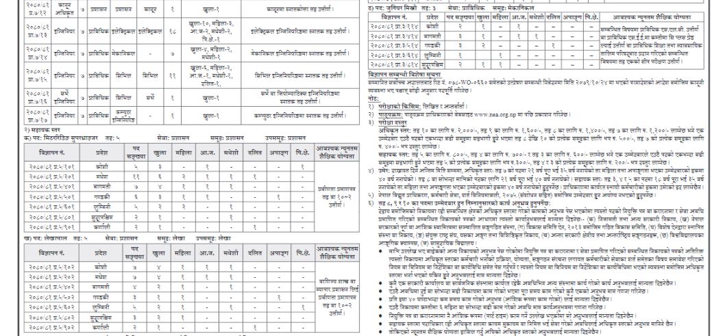काठमाडौं । नेपाल विद्युत प्राधिकरणले केन्द्र र प्रदेशमा ठूलो संख्यामा खुला प्रतियोगिताबाट छनोट गर्ने गरी विभिन्न पदमा दरखास्त माग गरेको छ ।