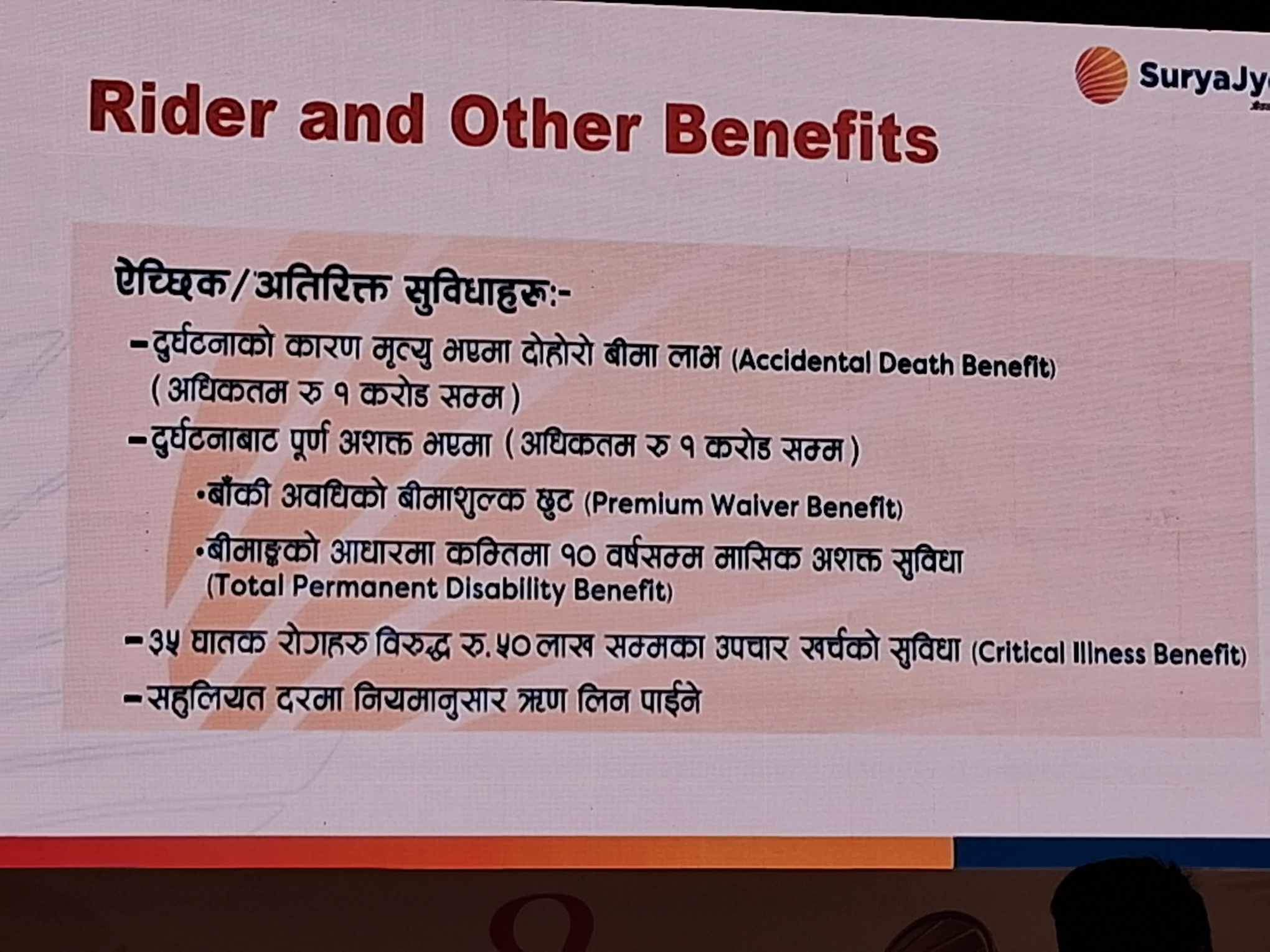 कार्यक्रममा सुर्यज्याेति लाइफका सिइओ प्रकाश बिक्रम खत्रीले आजै शुभारम्भ गरेकाे नयाँ प्रडक्टकाे बारेमा प्रस्तुतिकरण दिएका थिए ।