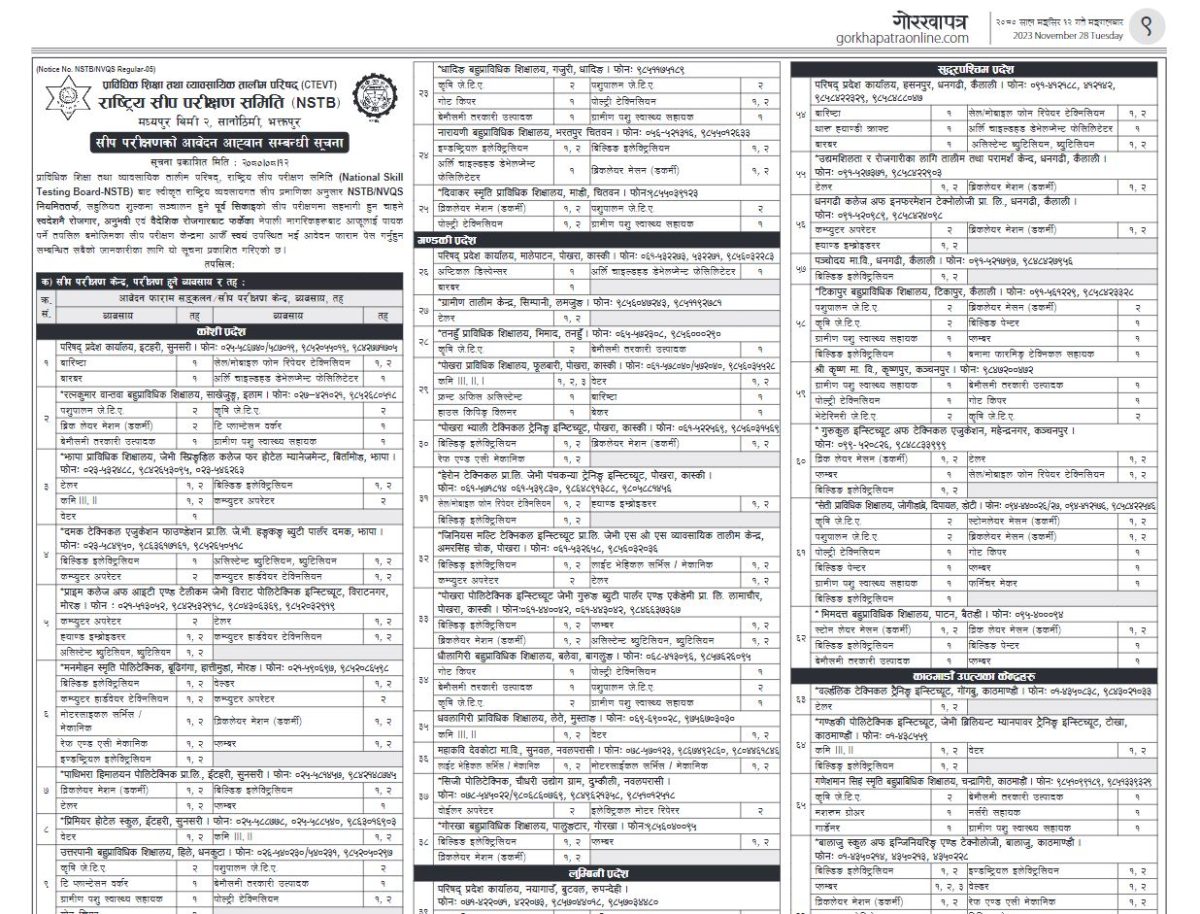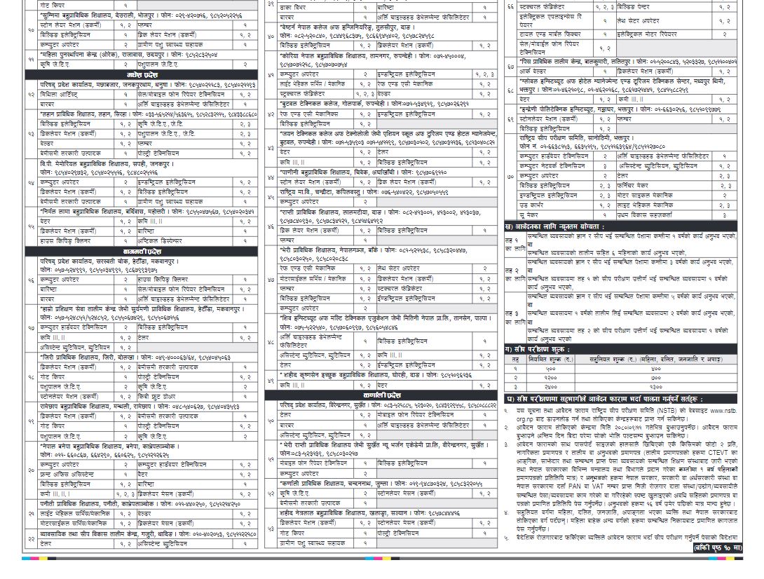 काठमाडौं । प्राविधिक शिक्षा तथा व्यावसायिक तालिम परिषद (सीटीईभीटी) अन्तर्गतको राष्ट्रिय सीप परीक्षण समितिले सात वटै प्रदेश र काठमाडौं उपत्यकामा सीप परीक्षणको आवेदन माग गरेको छ ।