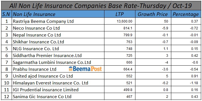 अधिकांश बीमा कम्पनीको शेयरमूल्यमा गिरावट, आज कुनको कतिले घट्यो ?