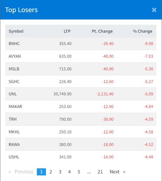 काठमाडौं । साता कारोबारको चौथो दिन अर्थात बुधबार शेयर बजार दोहोरो अंकले घटेको छ । कारोबारको अघिल्लो दिन झिनो अंकले घटेको शेयर बजार आज दोहोरो अंकले घट्न पुगेको हो ।