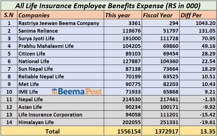 राष्ट्रिय जीवन बीमा कम्पनीको बोनस वृद्धिदर सबैभन्दा उच्च देखिएको छ । कम्पनीको कर्मचारी बोनस दर १०४३.२० प्रतिशतले बढेको हो । त्यस्तै, मर्जरमा गएका कम्पनीहरुले कर्मचारी बोनस दर बढाएका छन् । सानिमा रिलायन्सले १३१.०५, सूर्यज्योतिले ७०.९५ र प्रभु महालक्ष्मीले ४९.१६ प्रतिशतले कर्मचारी बोनस दर बढाएका हुन् ।