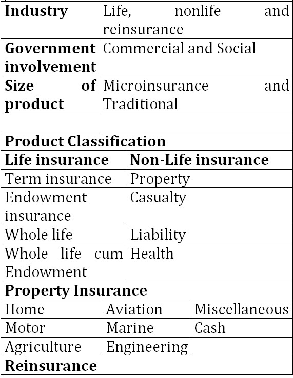 बीमा पोलिसीको बारेमा बुझ्न सजिलो होस् भन्ने उद्देश्यले विभिन्न आधारमा वर्गीकरण गरिएको छ । हरेक पोलिसीको फरक उद्देश्य हुन्छ । तल उल्लेखित सबै प्रोडक्टहरूको बारेमा यो सानो लेखमा चर्चा गर्न सम्भव नभएकाले अर्को कुनै लेखमा यसको विस्तृत छलफल गरिनेछ ।