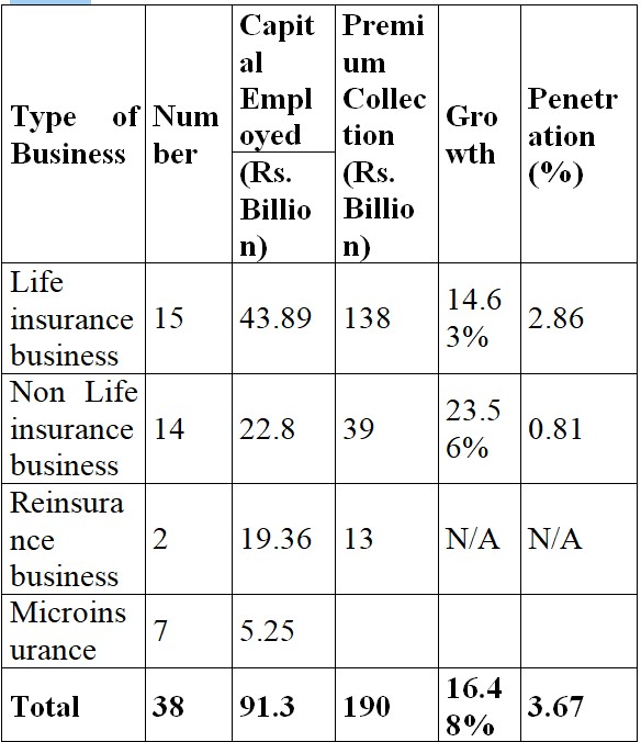 प्रिमियम आय, पुँजी र पेनिटे«सनः जीवन र निर्जीवन बीमाको वृद्धि झण्डै १६ दशमलव पाँच प्रतिशतले हुनु राम्रो पक्ष हो । नेपालको सन्दर्भमा यो पर्याप्त भने छैन । नेपालको जीडीपीमा बीमाको योगदान तीन दशमलव ६७ प्रतिशत छ । यो विश्वको औसत योगदानको आधारमा निकै कम हो । नेपालको बजार विस्तार र वृद्धिको अंक राम्रो देखिएको छ । तथापि आम जनताले बीमाको सेवा प्राप्त गर्न सकिरहेका छैनन् ।