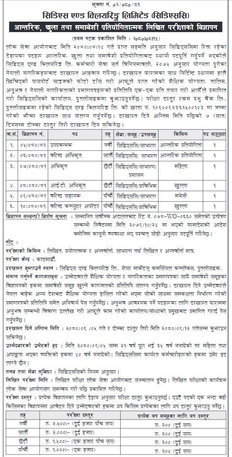 सिडिएस एण्ड क्लियरिङ्गमा वरिष्ठ कम्युटर अपरेटरदेखि उपप्रबन्धकसम्म जागिर खुल्यो (सूचनासहित)