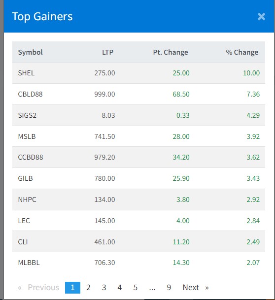 शेयर बजार घटेतापनि आज सिंगती हाइड्रो इनर्जिको शेयरमूल्यमा सकारात्मक सर्किट लागेको छ । त्यस्तै, सिभिल बैंकको डिभेन्चर २०८८, सिद्धार्थ इन्भेष्टमेन्ट ग्रोथ फण्ड स्किम २, महुली लघुवित्त लगायतका कम्पनीको शेयरमूल्य बढेको छ ।
