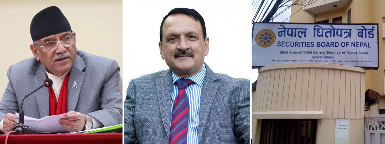 नेपाल धितोपत्र बोर्डमा नयाँ अध्यक्ष नियुक्तीको प्रक्रिया सुरु गर्न ढिलाई, प्रधानमन्त्री प्रचण्ड र अर्थमन्त्री डा. महतमाथि आशंका