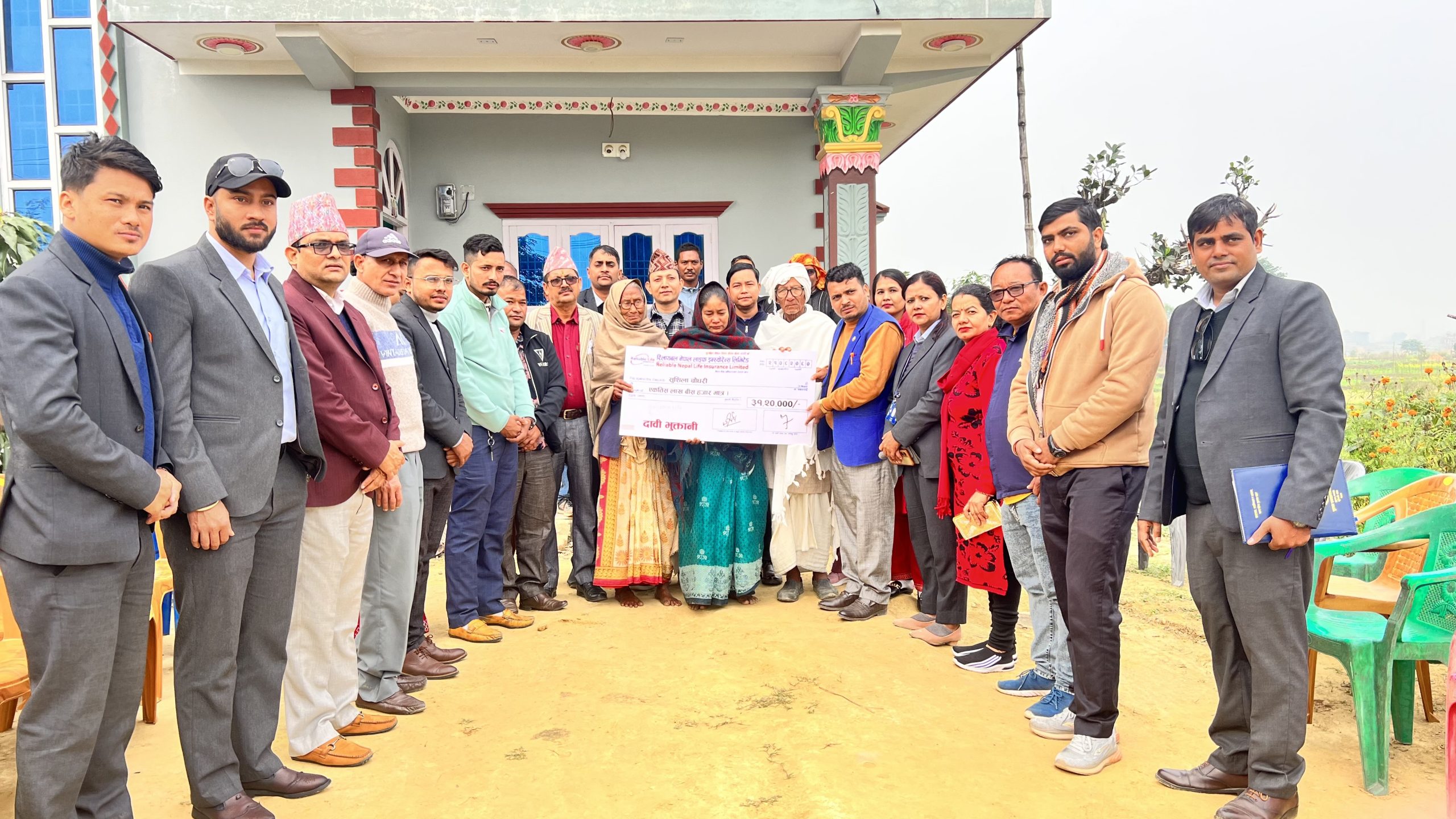 कम्पनीले रुपन्देही सैनामैना नगरपालिकाका अनिल कुमार चौधरीको ४० वर्षको उमेरमा ह्रदयघातबाट निधन भएपछि परिवारलाई मृत्यु दाबी बापतको ३१ लाख २० हजार रुपैयाँ भुक्तानी गरेको हो । सैनामैना नगरप्रमुमख फणेन्द्र शर्माले मृतककी पत्नी सुशिला चौधरीलाई उक्त रकम हस्तान्तरण गरेको कम्पनीले जनाएको छ।